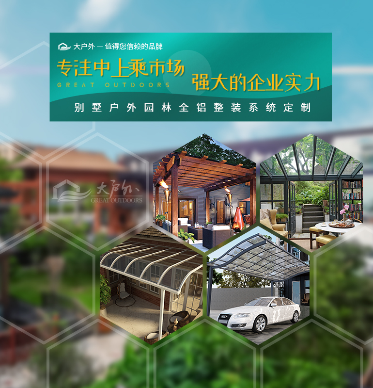大戶外立足于”中國鋁都“佛山南海,專注別墅遮陽(雨)產品開發(fā),是南海地區鋁合金遮陽行業的知名品牌。